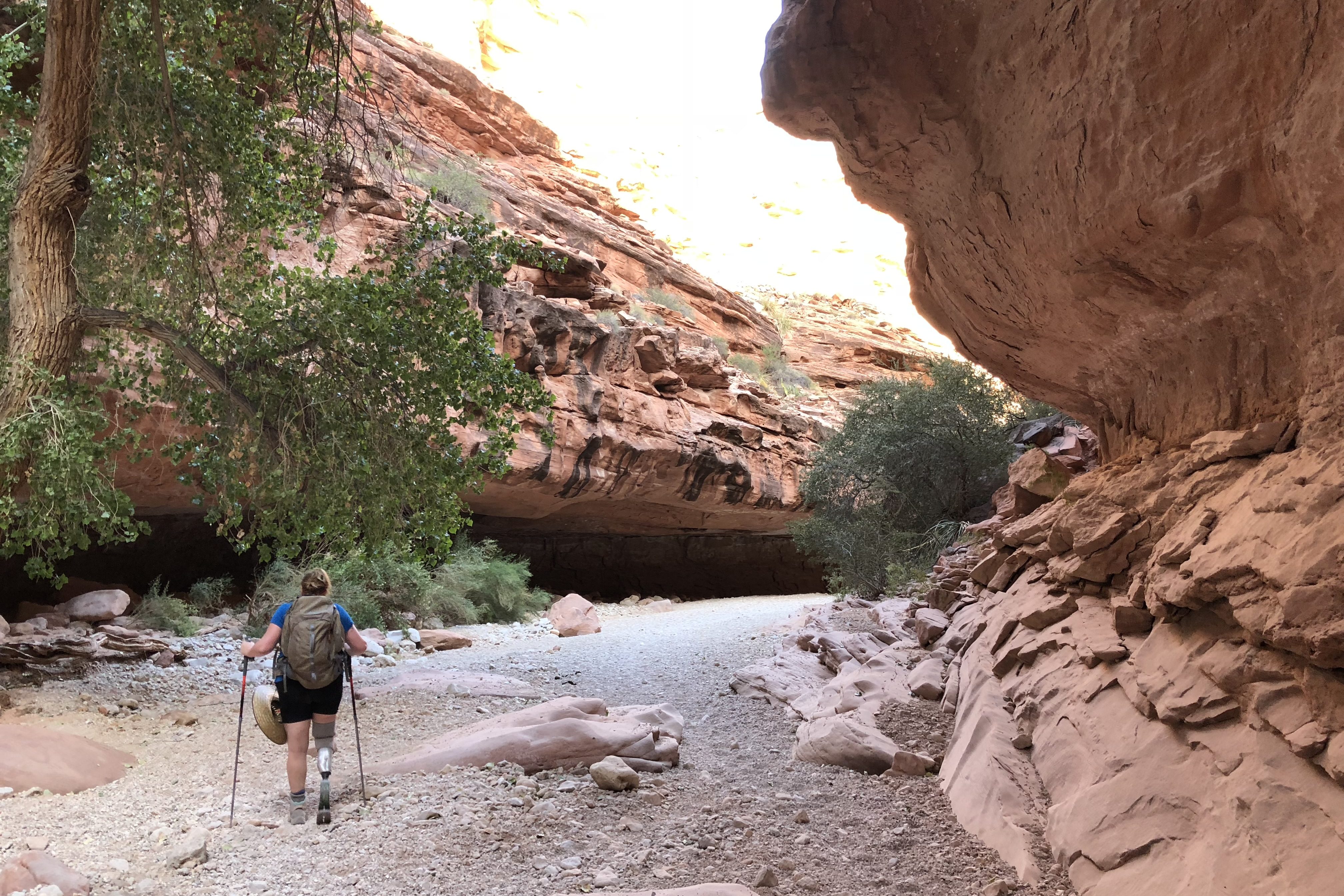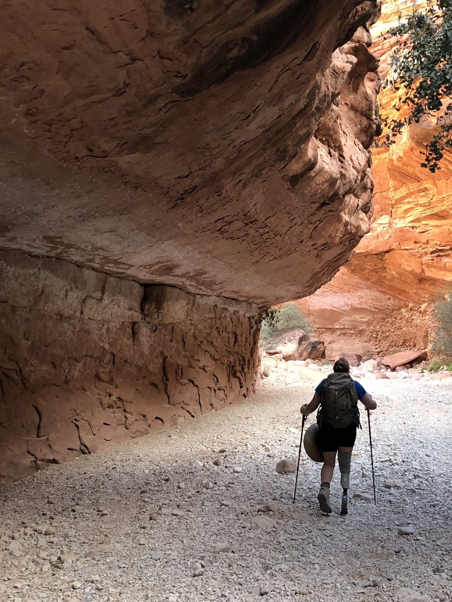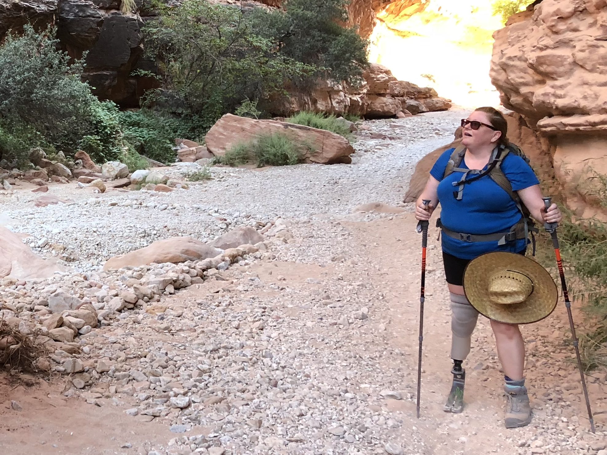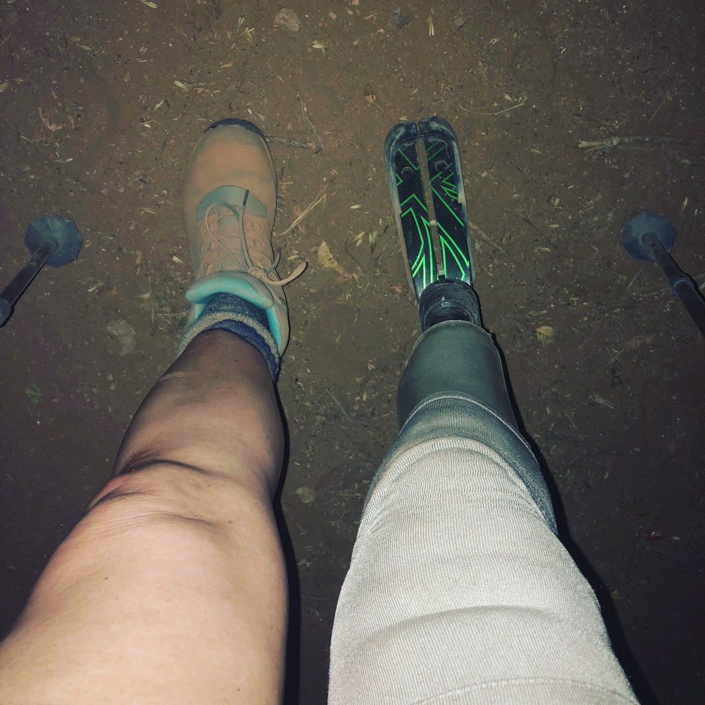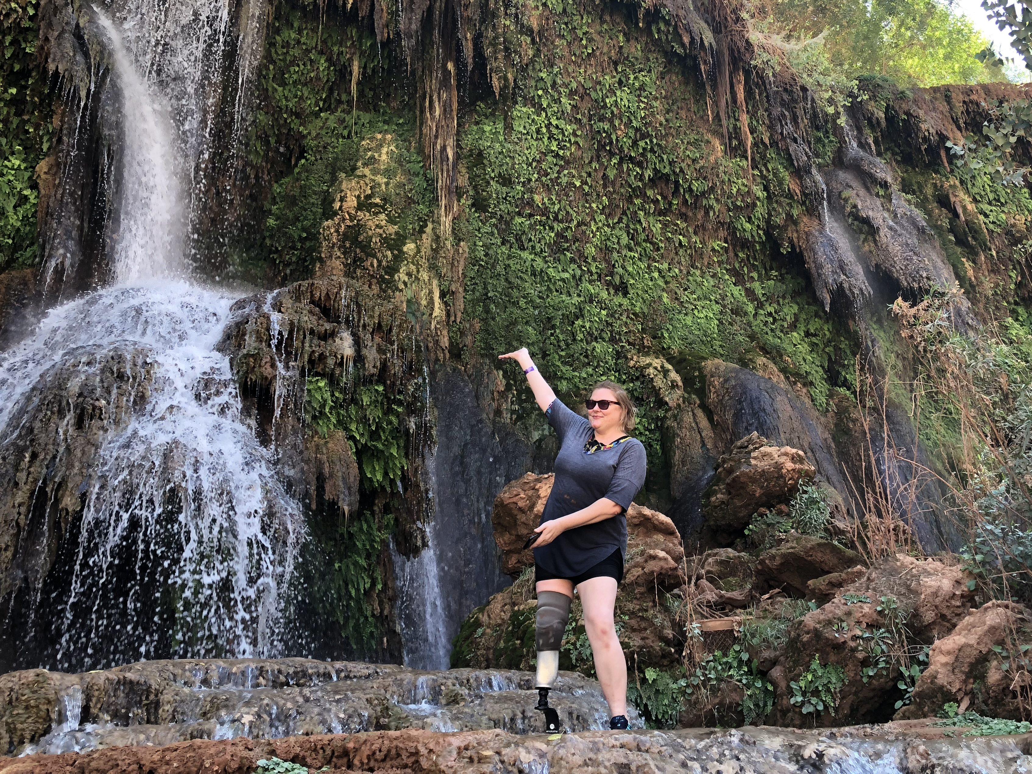 My trusty mid-range, activity foot carried me along (a Blatchford BladeXT), proving that speed isn’t what matters most—it’s the spirit within. I’ve mentioned my fabulous guide but the other MVP of this trek was truly that foot. It offers more energy return than a standard prosthetic leg and came in under 2lbs, which meant it was lightweight and helped to propel me forward in a manner closer to what one could expect from a natural, bio-grown leg. While I still wasn’t winning any races that day (or any other day), I still managed to do it! That day I managed to become the very first (1st) person with a lower limb amputation to hike into Havasupai Falls. I didn’t take the helicopter and I didn’t use a donkey. I took the good old heel toe express!