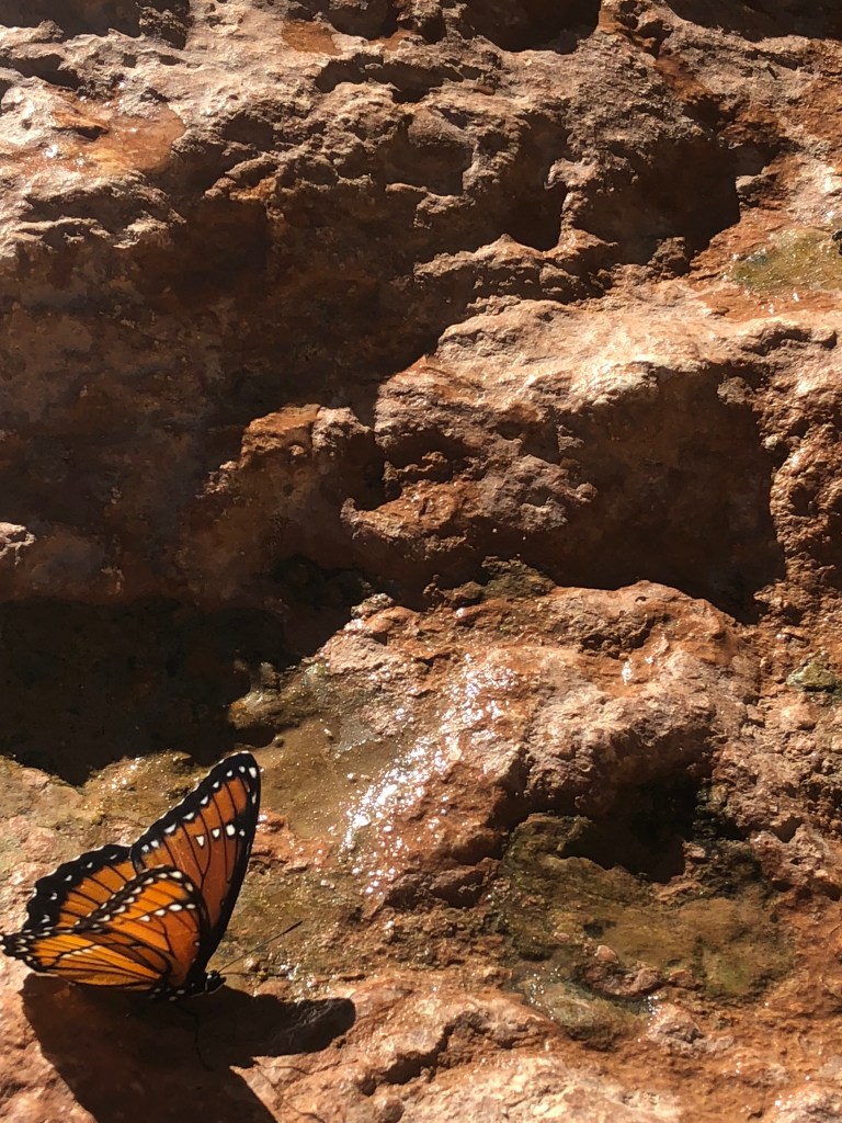 Surrounded by canyon walls and history, I was caught up by it all. And then there was that butterfly. I’m a little ashamed to admit that yes. I did take over 100 photos of an orange and black butterfly just living its best life among the turquoise water, perched upon the rocky orange cliffs.
