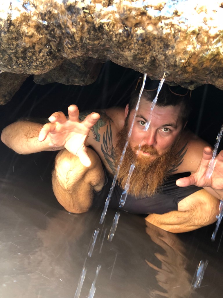 All that said, I would not have been successful in this attempt had it not been for one very kind and very attentive guide. He took me up boulders to see cave carvings when I needed a break. He forced me to drink water when he saw I was struggling. He made me get more in tuned with what my body needed by focusing on everything from my breathing (I’m sure I sounded like an angry hippo huffing and puffing), focusing on how red my skin was becoming (that man applied more sunscreen to my shoulders than should be allowed), and timing breaks. Like the stubborn little thing that I am, I just wanted to power through, but on this hike much like life, breaks are important. He stuck with me the entire three (3) days and even showed me a cool underwater cave. Yes, that is a photo of him pretending to be a monster emerging from that cave, gotta love that range!