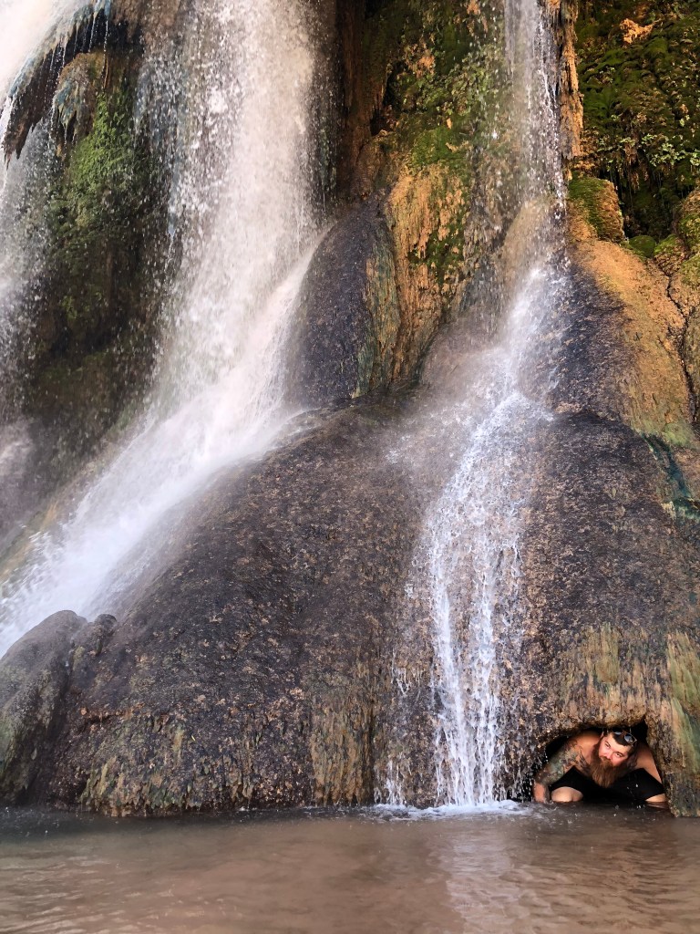 Given my penchant for staring at my feet while I walked, I was really fortunate that my guide surprised me with pics of ME. I realized I was missing so much of the journal because I had to stare at the ground to keep from falling on the rocky terrain, so I asked him to snap a few pics of the canyon for me. This man definitely understood the assignment! When he handed back that camera, I was treated to great pics of my triumph and my struggles. He got pictures of me slowing pecking my way over rocks and under waterfalls. So, maybe this is a love story to more than the Havasupai tribe and their home, maybe it’s also a love story for that guide. For without him, I truly don’t know that I would have been able to complete this task. Just goes to show that during travel much like during life, your support system matters!