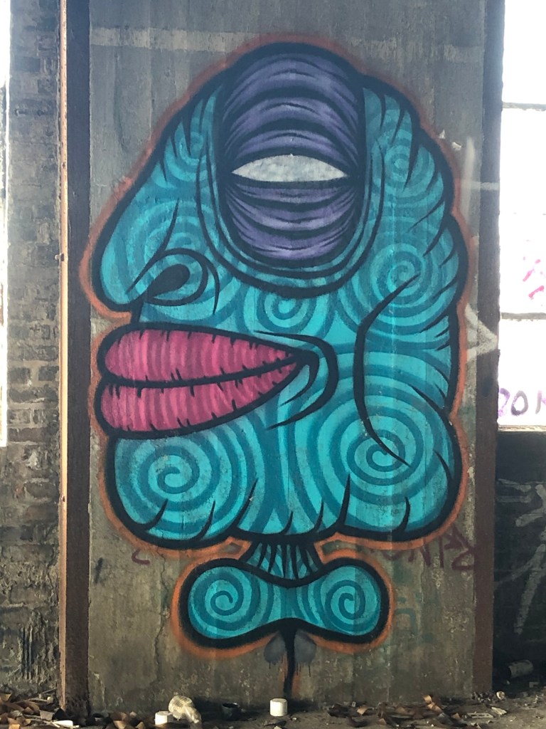 Armed with all that knowledge about street artists and their preferred styles, my travel companion and I hit up local cafes and well, talked to locals. They recommended at a jaunt to the abandoned electric company, a place where time truly stood still, and nature intertwined with human remnants, leaving a building to fall onto itself. Amid the eerie ambiance, I marveled at the haunting beauty that lay within these forgotten walls, capturing the essence of resilience and the passage of time. Not to be disappointed, the art began as soon as we made it past those gates. Note: This is an abandoned building and there are locked(ish) gates. Trespassing is illegal, and you enter at your own risk. Okay, disclaimer aside, this was spectacular.