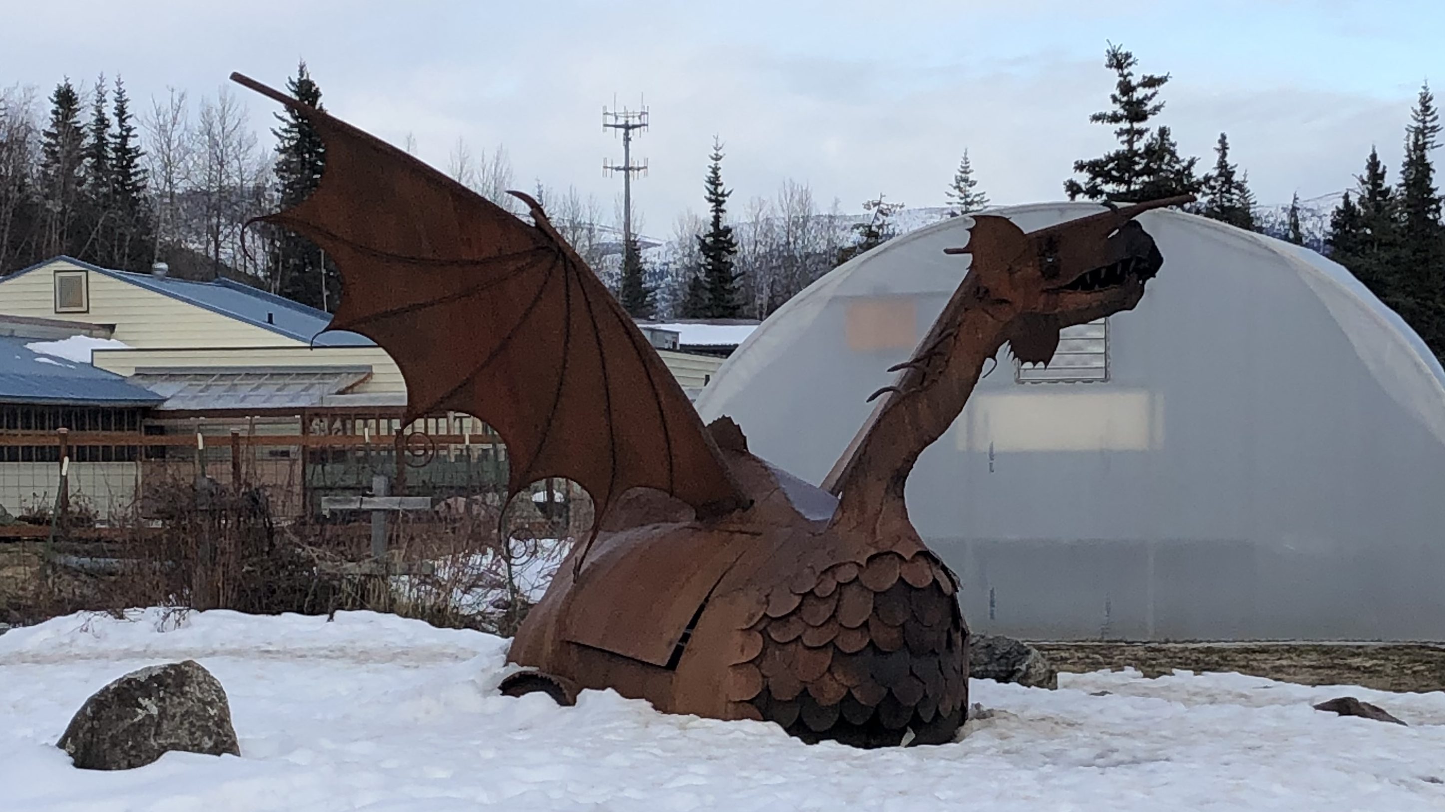 Why yes. That is a metal dragon sitting in a bed of snow.
